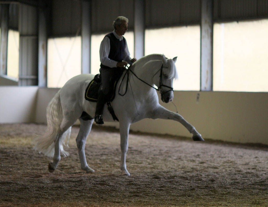 Half Pass during a training session with Dinamico – Andalusian Stallion
